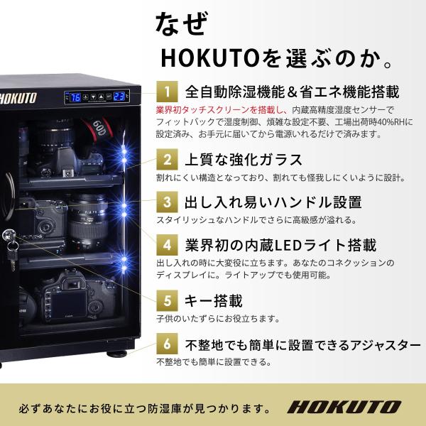 爆買 HOKUTO 防湿庫・ドライボックス HP-48EX 全自動除湿 カメラ保管庫 デシケーター 電池交換不要 内蔵LED照明 カメラカビ対策 除湿庫 5年保証 送料無料