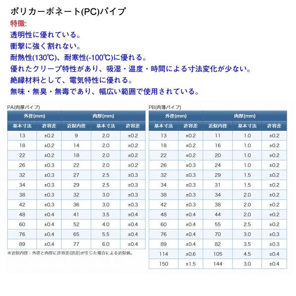 ポリカーボネート(PC)パイプ 肉厚タイプ 外形18mm内径14mm 長さ1m