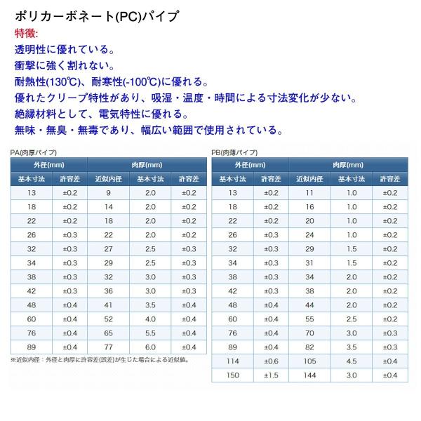 ポリカーボネート(PC)パイプ 肉厚タイプ 外形42mm内径36mm 長さ1m