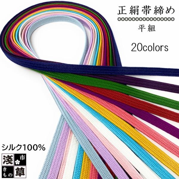帯締め 平組み 正絹 全20色 帯締 平くみ おびじめ 和装小物 帯〆 きもの 着付け 着物 メール便で2点まで 送料無料