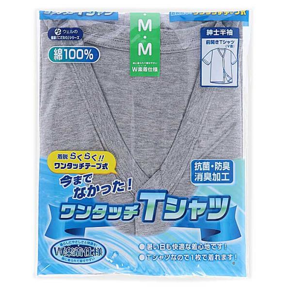 介護 肌着 男性用 前開き Tシャツ 半袖 ワンタッチテープ式 夏物 (on436152 グレーcf) 抗菌防臭 消臭 紳士 メンズ 下着 介護用 夏用