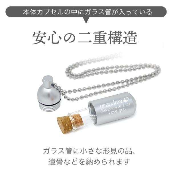 故人様向け ガラス管付 遺骨ペンダント 人間 3行 刻印 Sサイズ 遺骨ネックレス 遺骨カプセル 人 ケース 遺骨 アクセサリー 二重 構造 遺骨入れ 男性 分骨