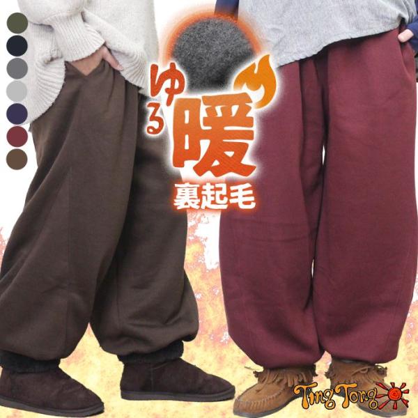 サルエルパンツ レディース 秋冬 裏起毛 暖かいパンツ タイ 服 アジアンファッション SPT 裏フリース風 起毛 ふんわり