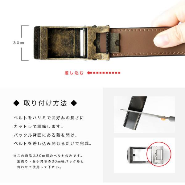 ベルト メンズ 革 無段階 バックルなし 幅30mm ベルトのみ スペア 交換 替えベルト シンプル カジュアル ビジネス ゴルフ 穴なし 大きいサイズ 牛革