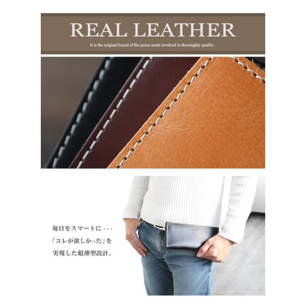 本革を使用したシンプルで飽きのこない極薄長財布です。使うほどに増す革の味わいが、美しいエイジング(経年変化)を生み出します。お札、小銭、カードと必要最低限の収納を備えており、とても薄いのでスーツの内ポケットに違和感なく入れることができます。深みの出る本革アイテムをさりげなく持てば、目にした人へハイセンスな印象を与えてくれます。あなただけの唯一無二のアイテムを育ててみてください。
