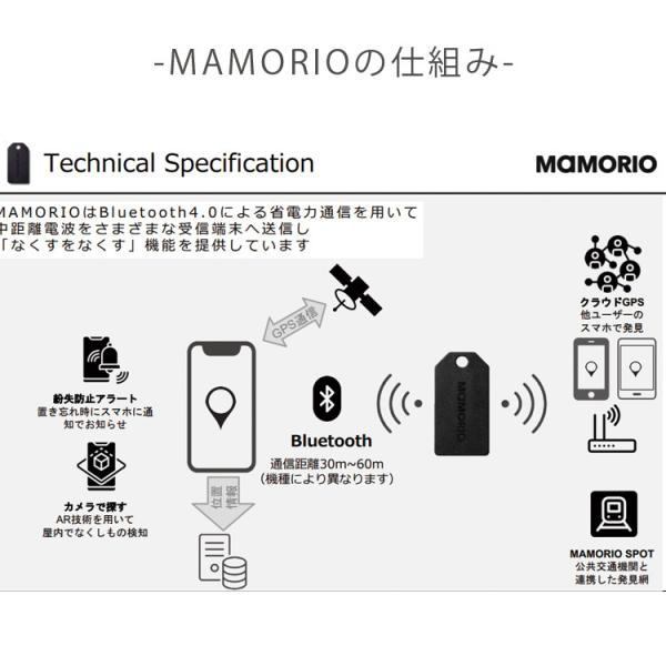 MAMORIOは「世界最薄・最小クラスの紛失防止タグ」 100円玉たった2枚分の厚さで、薄い財布や鍵につけてもスッキリおさまる。紛失してしまった時も「探す」機能で地図上でどこにあるかがひと目で分かる。 安心のMAMORIOサポートで、更に見つかりやすく。