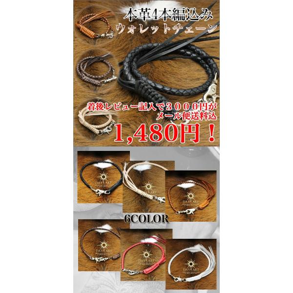 ウォレットチェーン 本革 4本編みサドルレザー ウォレットロープ