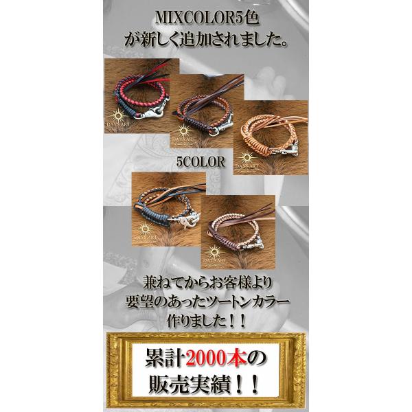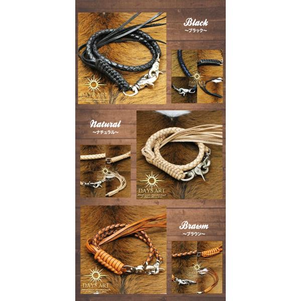 上質のサドルレザーを使用し、革職人が1本ずつ手編みで製作しています。定番の4本編みウォレットロープになります。本革は使えば使うほど独特のいい味が出てきます。