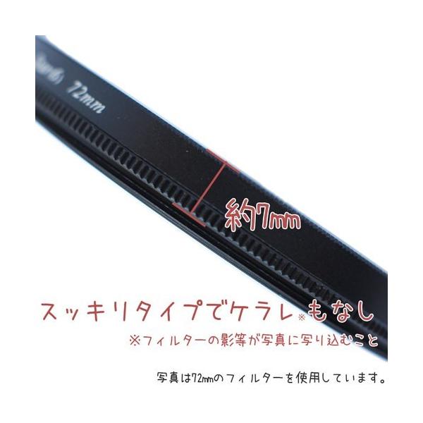 光の眩いキラキラを表現させることのできるクロスフィルター イルミネーションはもちろんの頃水面の輝きの撮影にも最適。装着したままレンズが回せる便利なサーキュラータイプ。光が雪の結晶のように伸びる6本線 スノークロスタイプです。 小売業者を通さない工場からの直接の仕入れ販売 及び日本人による厳しい品質管理により高品質ながらのこの低価格を実現しました。 Canon Nikon Sony Olympus Pentax Panasonic Fujifilmなど全メーカー対応可能なスクリュー式マウントです。キャノン ニコン ソニー オリンパス ペンタックス パナソニック 富士フィルム