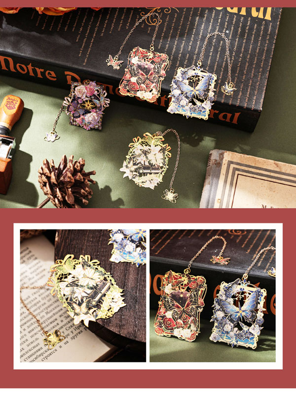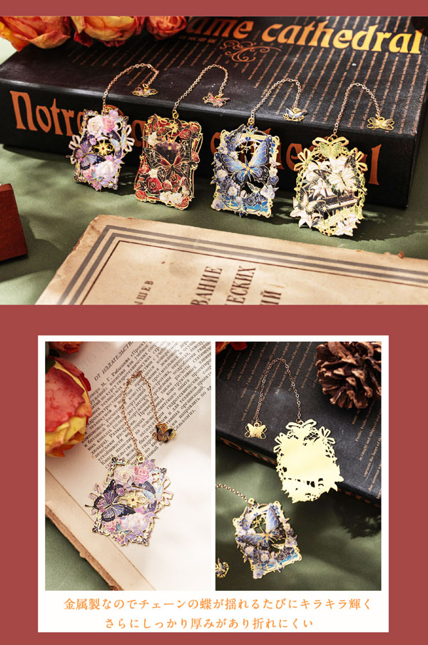【メール便発送OK】美しい名画の世界が広がる 栞 揺れる目印付き 可愛いしおり メタルブックマーカー 全4デザイン 水や汚れに強い金属製 プレゼントに