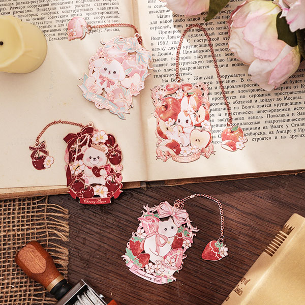 読書がもっと好きになる! 可愛いどうぶつたちとフルーツのキラキラ光る金属製しおり