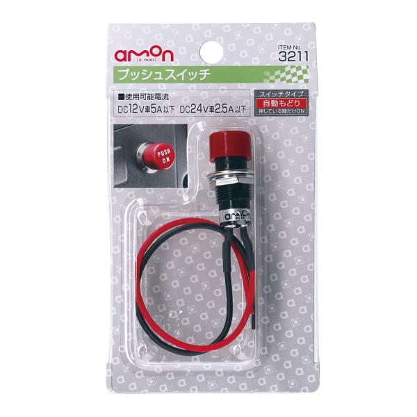 プッシュスイッチ 自動もどり(押している間だけON) 12V/24V共用 ホーンなどの配線に! (No.3211)