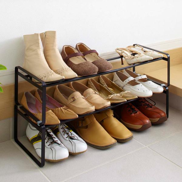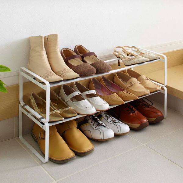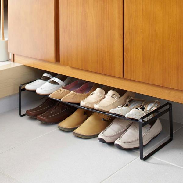 frame 伸縮 シューズラック フレーム 1段 下駄箱 玄関 収納 下駄箱下 隙間収納 玄関収納 靴収納 伸縮タイプ 積み重ね シューズ 収納 ホワイト 7209 ブラック 7210 山崎実業 Yamazaki