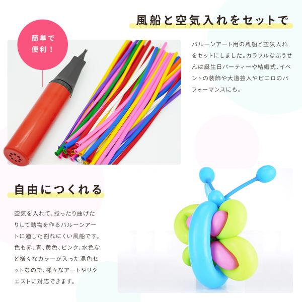 風船 空気入れ付 200本 送料無料 バルーン ツイストバルーン バルーン アートballoon ペンシルバルーン 空気入れ ハンドポンプ 大道芸人 イベント パーティー