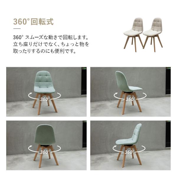 360°回転座面で立ち座りが楽なダイニングチェア同色2脚セット。