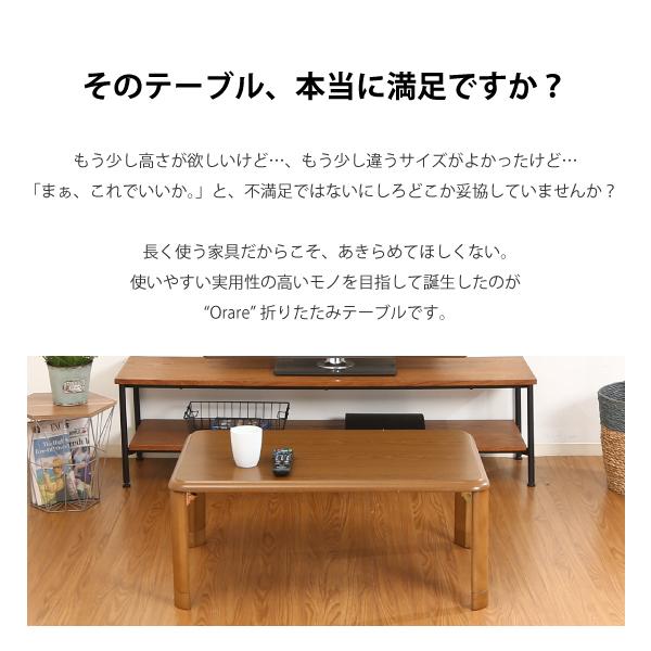 テーブル センターテーブル リビングテーブル おりたたみテーブル おりたたみ 折りたたみ 折り畳み 折れ脚 orare ORARE オラレ 幅90 座卓 継脚 軽量 軽い 省スペース コンパクト ちゃぶ台 2段階 高さ調節可能
