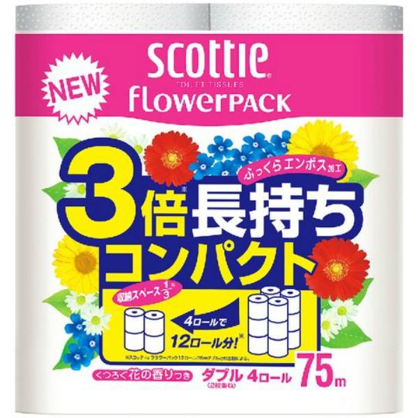 トイレットペーパー ダブル スコッティ フラワーパック 3倍長持ち コンパクト 4ロール 日本製紙 クレシア