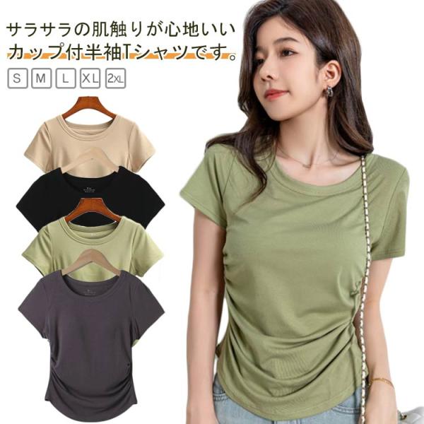 半袖 カットソー レディース ブラトップ パッド付きTシャツ Tシャツブラ トップス ブラトップ カップ付き インナー 下着 肌着 ブラジャー Tシャ