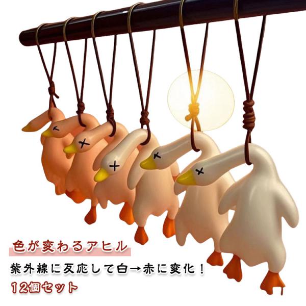色が変わるアヒル 吊り下げ 車 キーホルダー 変色 紫外線感知 紫外線チェッカー デコレーション キーホルダー 12個セット ペンダント アヒル ルー