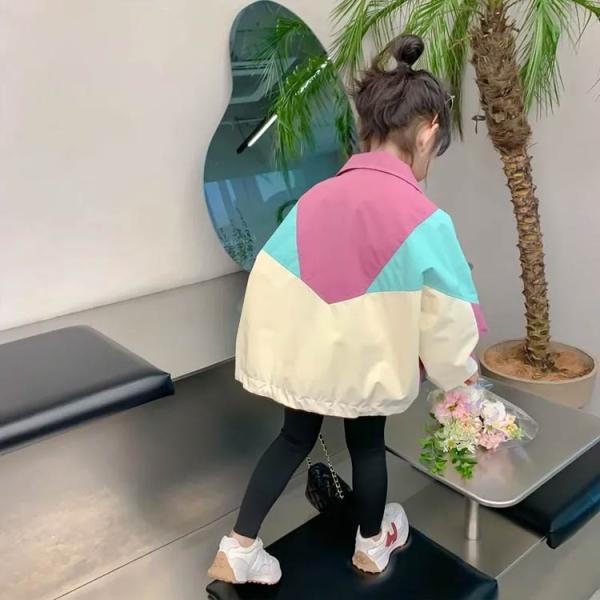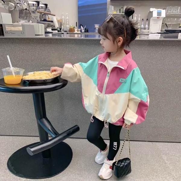ウインドブレーカー 通園 防風 切り替え ライトジャケット 子供服 配色 ジップアップ 可愛い キッズ 女の子パーカー ゆったり コート アウター 長