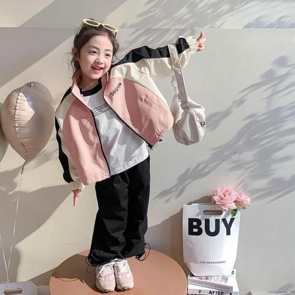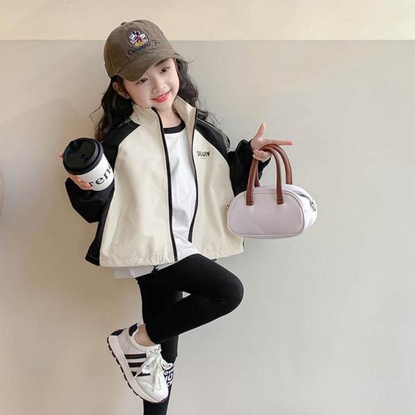 送料無料 防風 ウインドブレーカー 配色 フードなし 子