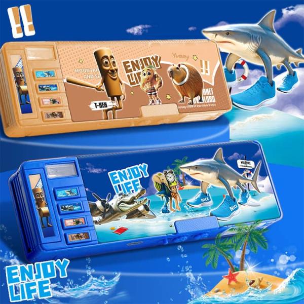 トゥントゥントゥンサーフール 筆箱 両面開き 筆箱 トララレロトラララ 大容量 小学生 送料無料 イタリアンブレインロット ロック機能 飛び出し防止