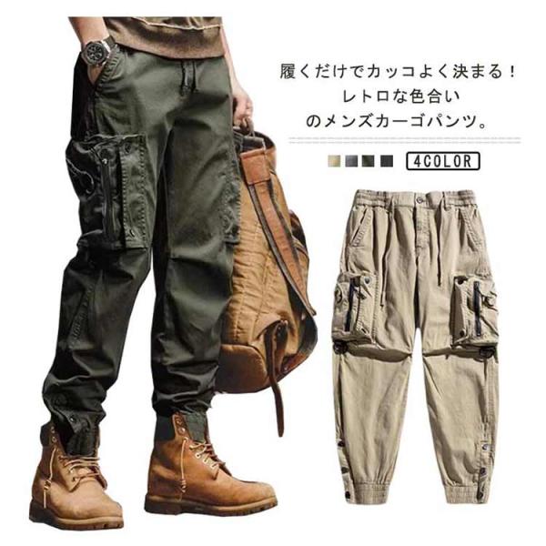 メンズ カーゴパンツ ジョガーパンツ 作業ズボン 裾絞り 長ズボン ロングパンツ ワイド ワークパンツ ワークズボン 作業着 ボトムス 耐磨耗 無地