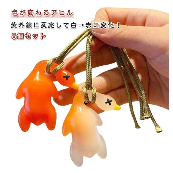 キーホルダー 北京ダック 8個セット ルームミラー用 変色 紫外線レシーバー デコレーション 吊り下げ カバン掛け 紫外線チェッカー ペンダント アヒ