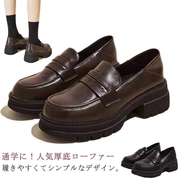 5.5cmヒール 靴 ローファー 学生 厚底 スクールローファー ローファー 23 高校生 靴 痛くない フォーマルシューズ 女の子 発表会 中学生