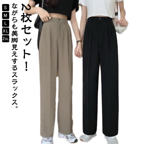 2枚セット 秋 レディース ストレートパンツ パンツ きれいめ ゆったり スラックス 美脚シルエット スラックス タックパンツ センタープレス スラッ