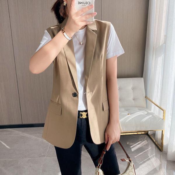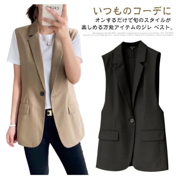 ベスト ジレ Vネック 送料無料 春 夏 秋 前開き ロング カジュアル ミドル丈 ノースリーブ ジャケット テーラードベスト 羽織り 送料無料 オフ