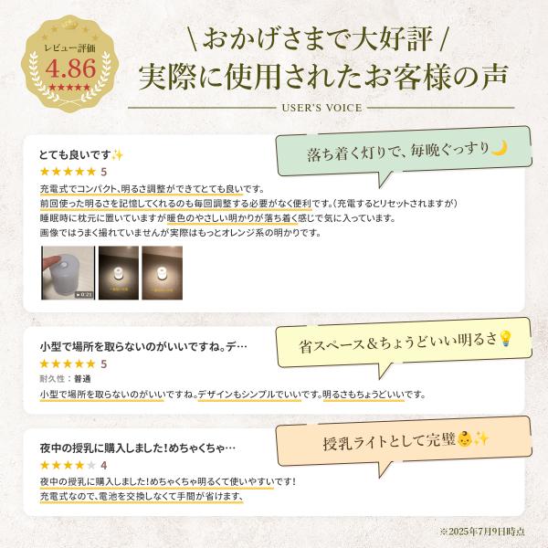 触れるだけで優しい光が広がるLEDナイトライトのご紹介です。タッチセンサーを搭載しており、ワンタッチで簡単に点灯。無段階調光機能で、お好みの明るさに細かく調整できます。さらに3タイプのライトカラーが選べ、切り替えた明るさも記憶するので次回も同じ設定で使えます。USB type-c充電式で軽量コンパクトながら約140グラムの頼もしい設計。直径7cm、高さ8.7cmのサイズ感は場所を選ばず、寝室やデスク、授乳時のライトとしても最適です。1500mAhのバッテリーは充電時間2〜4時間で、高輝度なら約6時間、低輝度では約150時間の連続使用が可能。ABS樹脂とPC素材の組み合わせで耐久性にも優れています。シンプルでおしゃれなデザインと多彩な機能が揃ったこのナイトライトは、毎日の癒しと快適な空間作りに欠かせないアイテムです。ぜひ手軽に温もりのある灯りをお楽しみください。