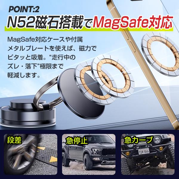 スマホホルダー 車 車載ホルダー MagSafe マグセーフ スマホホルダー 携帯ホルダー スタンド 真空 吸着 マグネット 強力 コンパクト 軽量 ドライブ