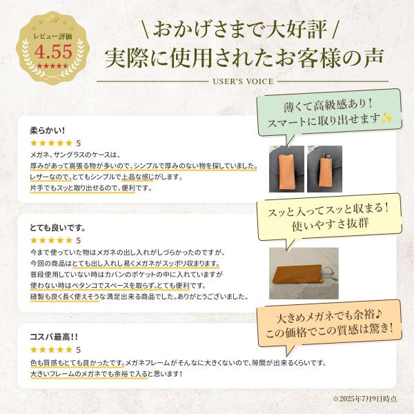 PUレザーの質感が大人っぽく、かわいらしさも兼ね備えています。スリムなデザインで、鞄にコンパクトに収納でき、持ち運びに便利です。サングラスケースとしても人気があります。防水仕様で外出先でも安心です。大きく開くがま口タイプなので、メガネの出し入れが簡単です。
