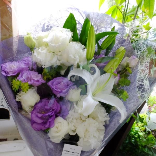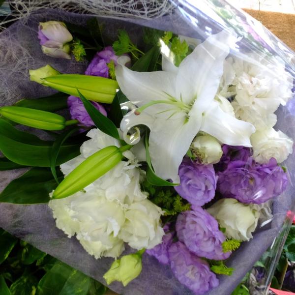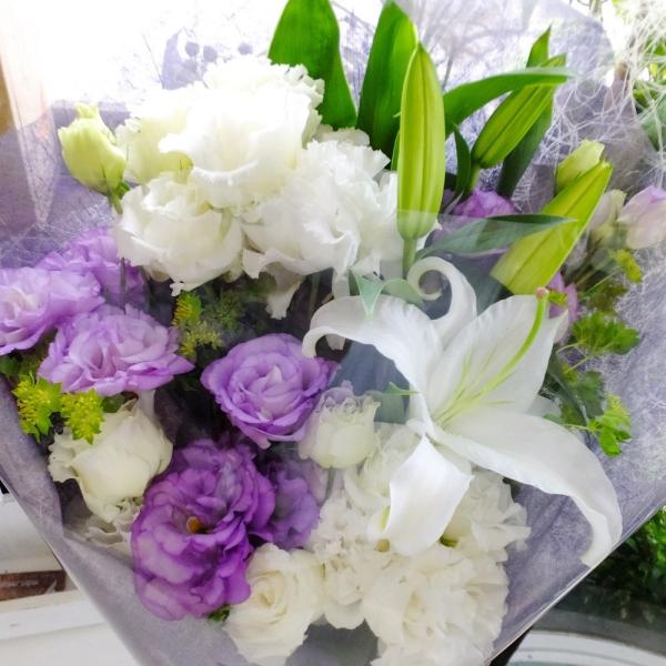 豪華な大輪ユリとトルコキキョウの洋風お供え花束