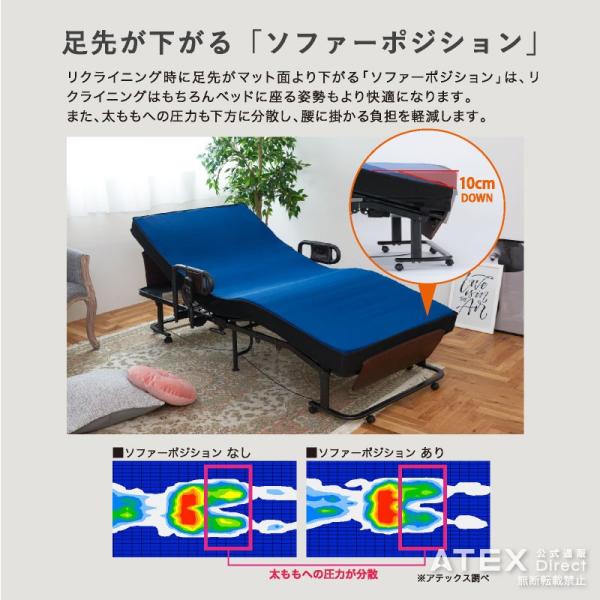 リクライニング時足先が下がるソファポジション搭載電動ベッド