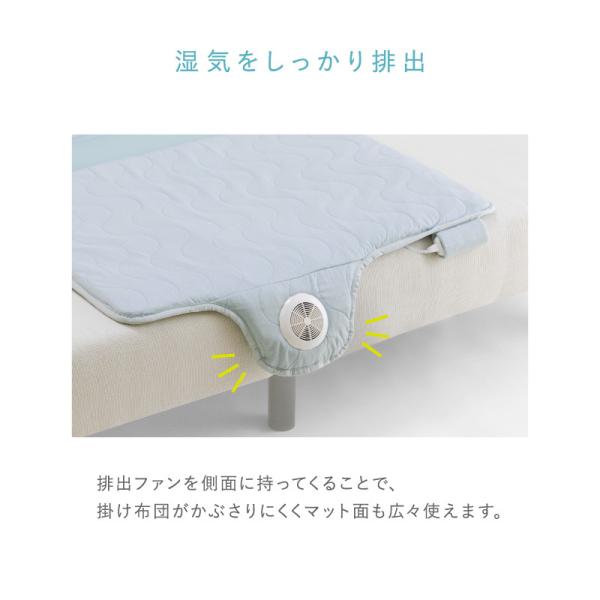 ・小型ファンがマットの中に風を通して蒸れを軽減