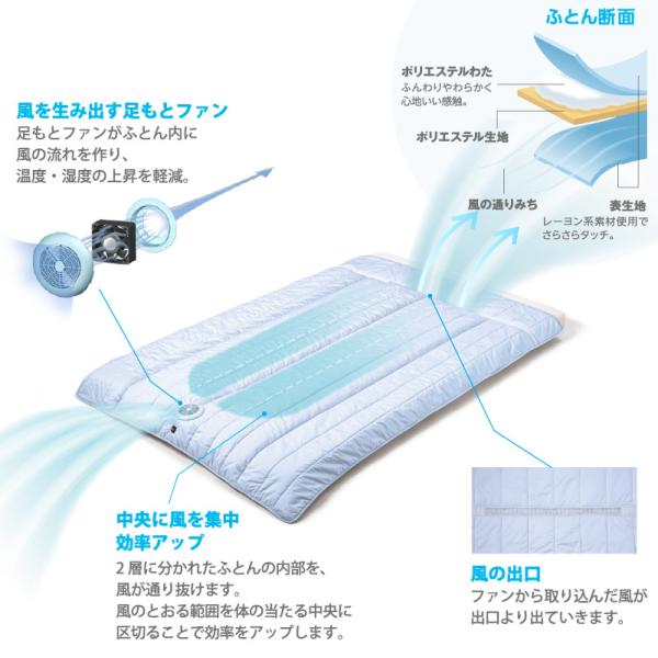 風を生み出すファンを搭載した掛けふとん