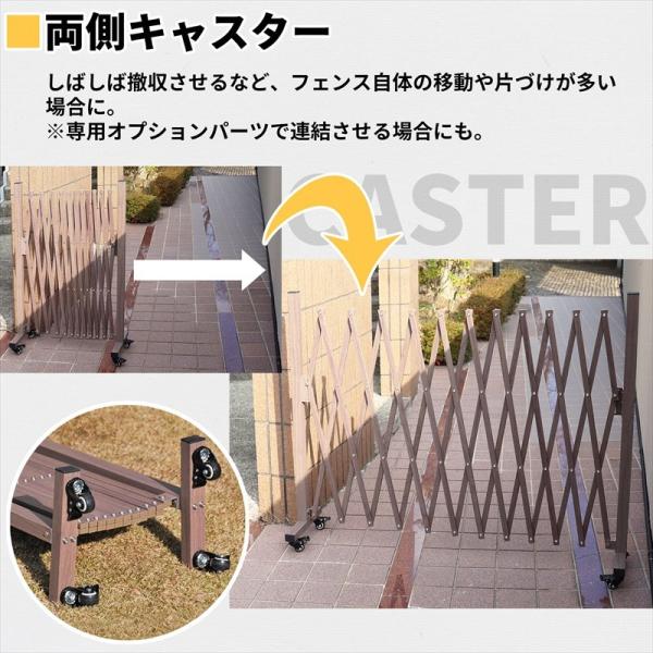 アルミ ストレッチフェンス3m・両側キャスター アルミフェンスフェンスdiy アルミフェンス 木目調 伸縮 ゲート