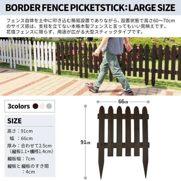ボーダーフェンス ピケスティック(ラージ) 4枚セット フェンスdiy フェンスdiy木材 おしゃれ