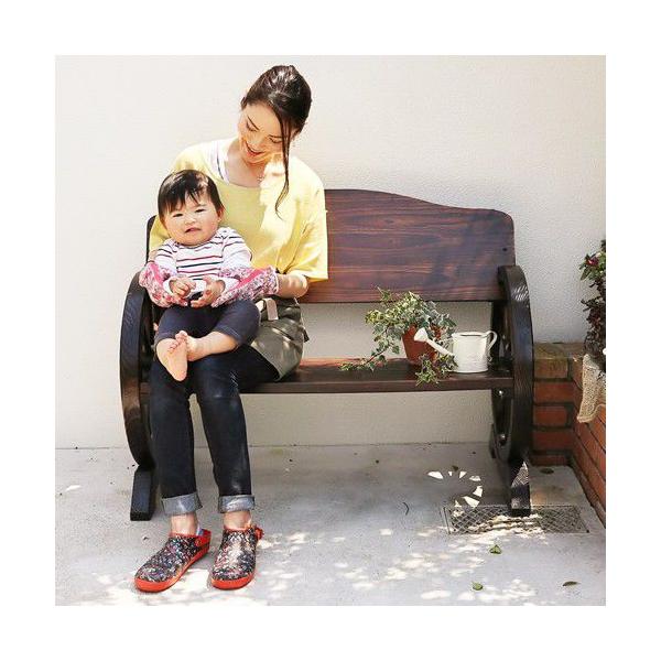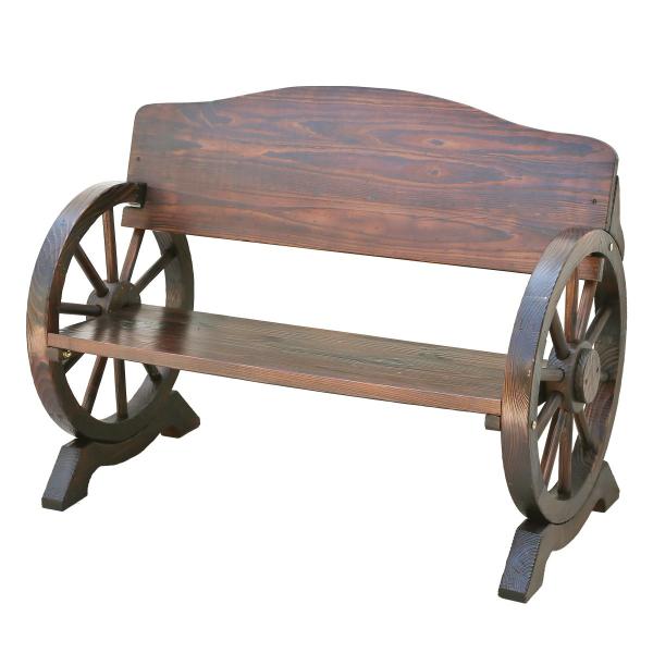 ベンチ 木製ベンチ ウッドホイール風 車輪付きベンチ 幅110cm 2人掛け 屋外 ガーデンベンチ 椅子 チェア 庭
