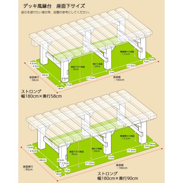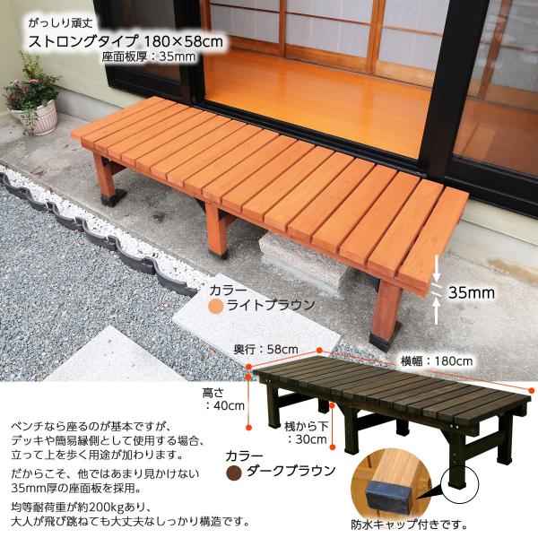 木製 デッキ縁台ストロング 180cm×58cm ライトブラウン 天板厚 35mm