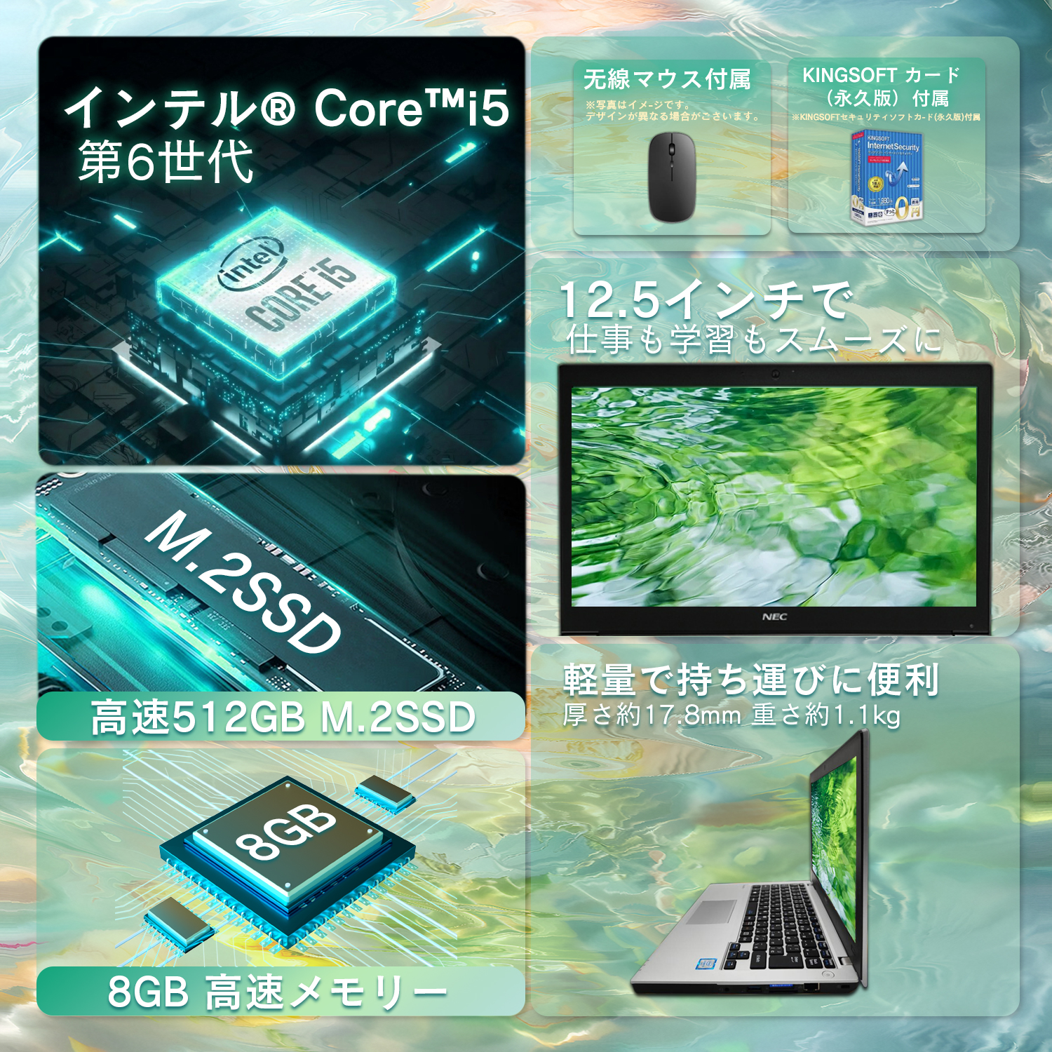 ノートパソコン 中古PC NEC 12SFシリーズ/VKT16B4 Win11 Office搭載 12.5インチ メモリ8GB SSD256GB インテル Core i5 ノートPC 初期設定不要 薄型軽量 爆買
