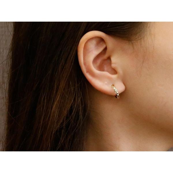 ハワイアンジュエリー 18金 フープ ピアス レディース 片耳 リング 装着簡単 キャッチのいらないピアス ゴールド 18k シンプル 女性
