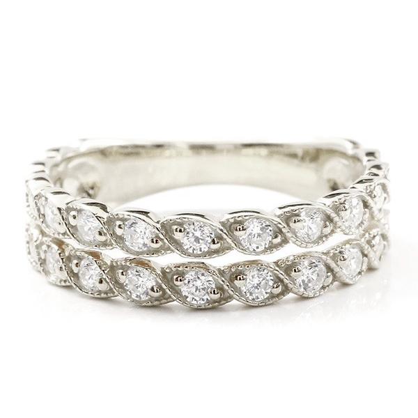 婚約指輪 リング シルバー925 キュービックジルコニア エンゲージリング 2連 指輪 ミル打ち ミルグレイン ピンキーリング sv925