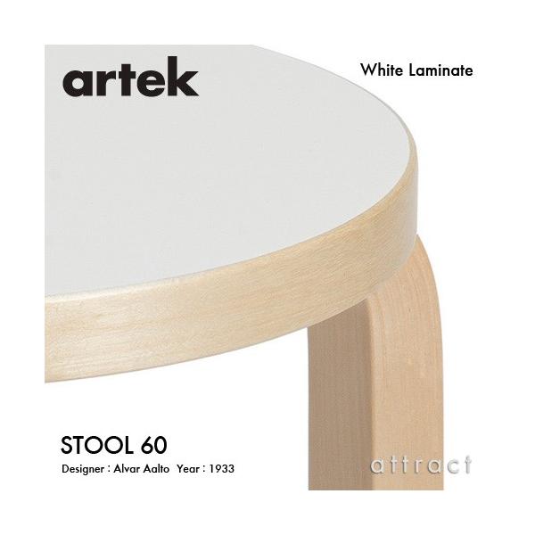 Artek アルテック STOOL 60 スツール 3本脚 バーチ材 座面(ホワイトラミネート) 脚部(クリアラッカー) デザイン:アルヴァ・アアルトト