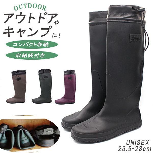 レインブーツ レディース メンズ 長靴 黒 ブラック アウトドア キャンプ 雨 ガーデニング 洗車 収納 POCKETABLE RAIN BOOTS