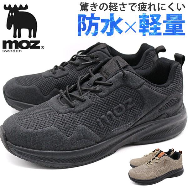 スニーカー メンズ 靴 黒 ブラック ベージュ 軽量 軽い 防水 ウォーキング 厚底 滑らない クッション性 防水シューズ 晴雨兼用 疲れない モズ moz 4273