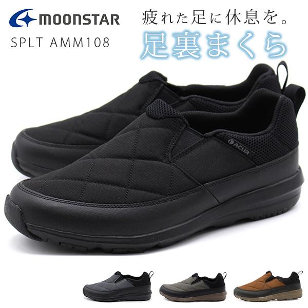ムーンスター スリッポン メンズ 靴 スニーカー 幅広 4e ワイド 4E 軽量 軽い 黒 ブラック 紺 厚底 足裏まくら 抗菌防臭 ハンズフリー moonstar SPLT AMM118