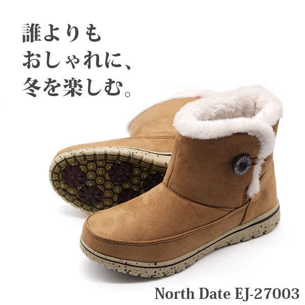 ブーツ レディース 長靴 黒 ブラック ネイビー カーキ フェイクムートン レイン 防水 スパイク 防滑 防寒 ノースデイト North Date ME7003 EJ-27003